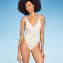 Women’s Braid Detail Extra High Leg One Piece Swimsuit – Shade & Shoreâ„¢ Off-White