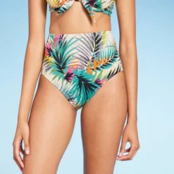 This High-Waist Medium-Coverage Bikini Bottom from Shade & Shoreâ„¢ brings some tropical flair to your swim wardrobe. Made from soft fabric with spandex and full lining, this hipster bikini bottom gives you flexible movement in and out of the water. Featuring a high-waist, medium-coverage design, it’s decorated with allover multicolored palm print, and elastic at the leg openings provides a stretchy, comfortable fit.