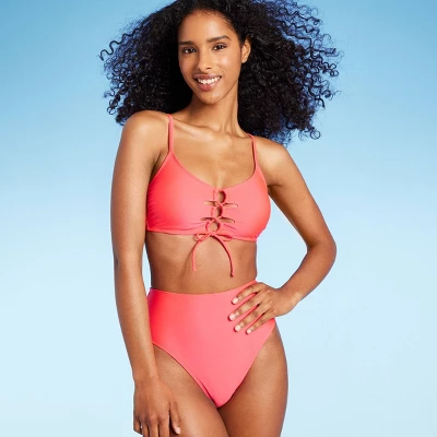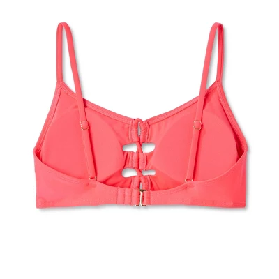 Head out to the beach in trendsetting style with this Lace-Up Bralette Bikini Top from Shade & Shoreâ„¢. Made from stretchy fabric for flexible comfort, this pink bralette bikini top showcases a lace-up design with a keyhole front and a tie detail for chic flair. The adjustable shoulder straps and a back hook closure ensure a worry-free fit, while the removable cups offer customizable coverage. Pair with a matching bikini bottom or a wide variety of other bottoms for versatile swimwear options.