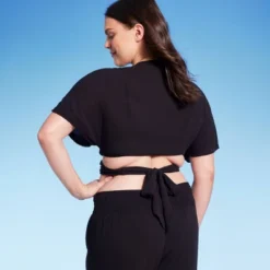 Stay in style whether lounging poolside or enjoying the beach with this Multiway Wrap Cover-Up Top from Shade & Shoreâ„¢. This short-sleeve cover-up top features a plunging neckline with a multiway wrap tie closure that adds functional appeal and creates a stand-out look. Made with lightweight fabric for cool comfort, this cover-up top makes the perfect pick for a variety of bottoms in your swim closet.