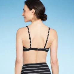 You’ll be ready for beach vacations or family trips to the pool wearing this Ribbed Demi Underwire Bikini Top from Shade & Shoreâ„¢. Made from a soft fabric blend with spandex and a full lining, this demi bikini top provides flexible comfort in and out of the water. Removable padding offers customizable coverage, while the underwire construction gives you plenty of support. Designed in black with white stripes, the top features adjustable straps and a back hook closure to help you find the perfect stay-put fit.