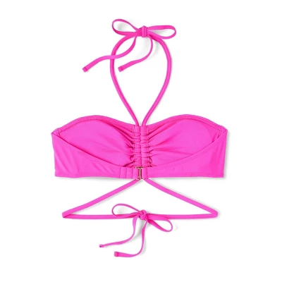 The Strappy Halter Bandeau Bikini Top from Shade & Shoreâ„¢ makes the perfect addition to your beach-day attire. The bikini top features a bandeau cut with center cinched and strappy detailing for a fashion-forward look you’ll love when you’re by the water. The bandeau bikini top is made from a soft fabric with added spandex that offers you flexible movement whether lounging poolside, taking a stroll along the shore and more. Removable cups let you adjust to your preferred level of coverage, while the back hook closure and ties keep the top secured. Simply pair with a variety of bikini bottoms to create a range of swim looks you’re sure to love.