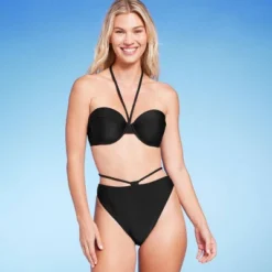 Add some textured style to your swim look with this Strappy Ribbed High Waist Extra High Leg Extra Cheeky Bikini Bottom from Shade & Shoreâ„¢. This solid black bikini bottom features an extra cheeky high-waist cut with a high-leg design. It’s detailed with vertical ribbed texture and an attached strap accent that has to be tied around the waist to create chic style. The stretchy fabric with elastic at the leg openings lends comfortable movement, while the opaque construction offers coverage for confident wear. Pair with the available matching bikini top for a coordinated look, or with other solid or patterned swim tops for an endless array of styling options.