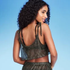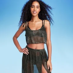 Shine wherever you go wearing the Tie Detail Lurex Cropped Cover-Up Dress from Shade & Shoreâ„¢. Perfect for wearing over you favorite swimsuit, this black cover-up with tie detail at the shoulders is made from soft fabric with added metallic fiber for a glamorous look. Designed with lurex, this cropped cover-up dress in black makes a beautiful addition to your swimwear collection.